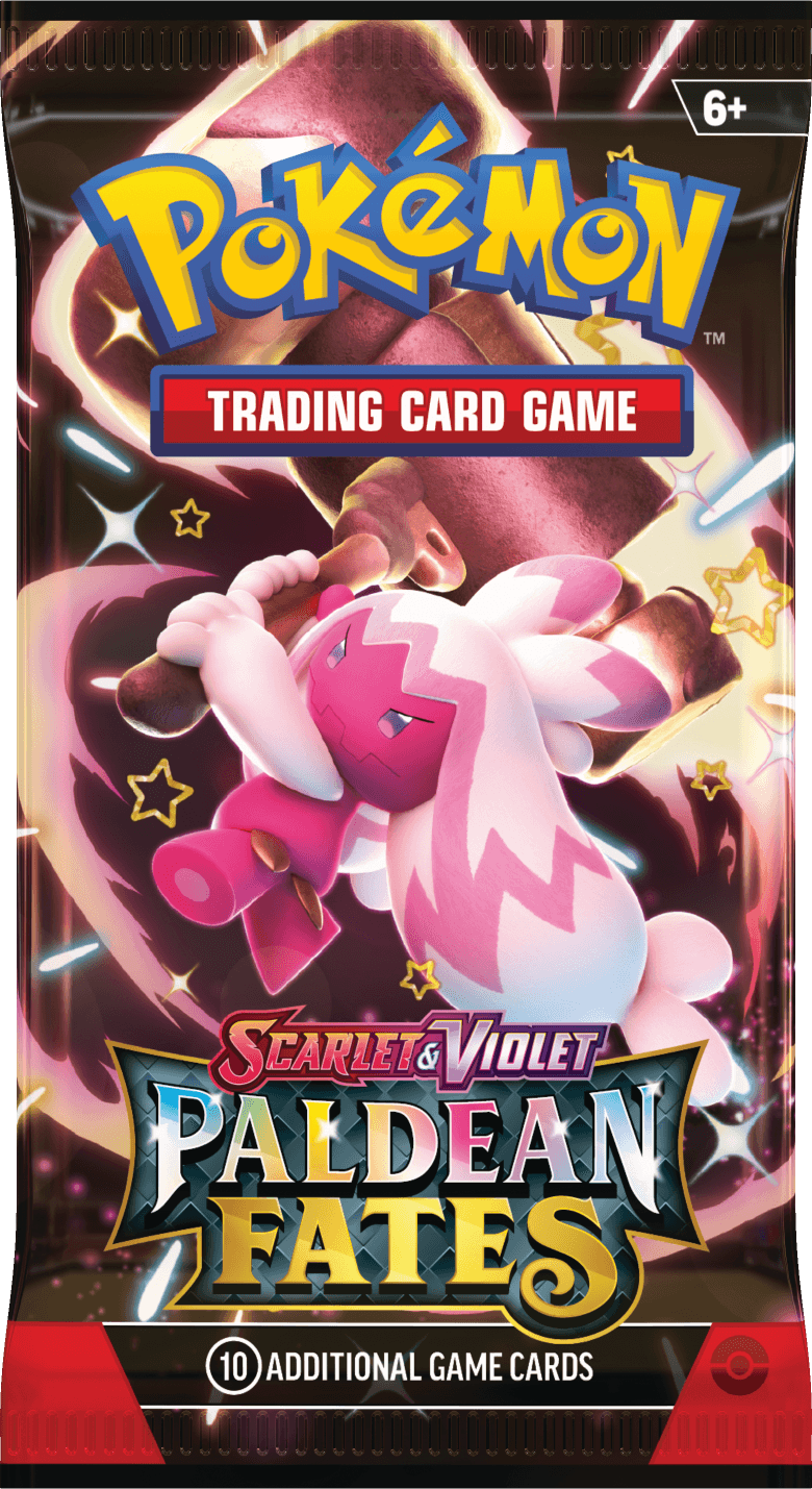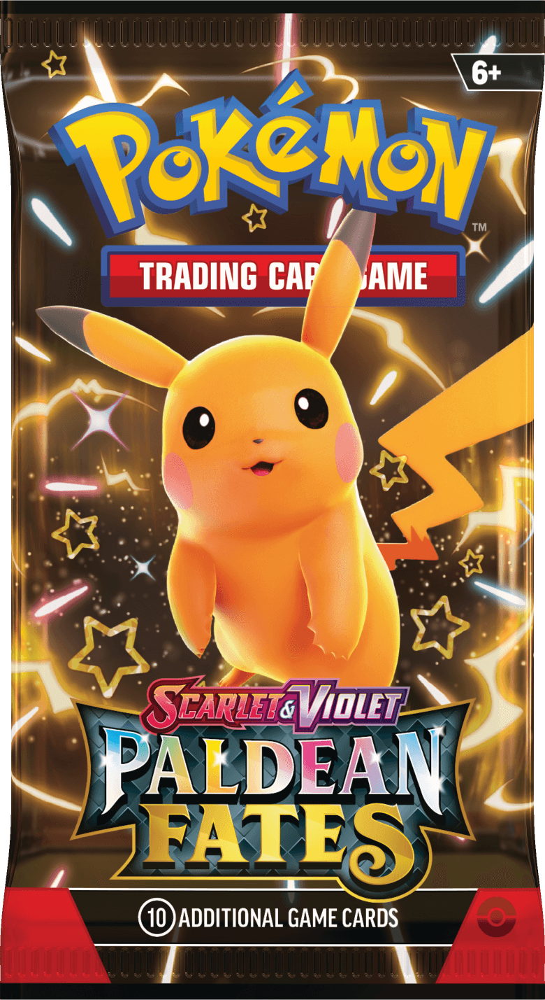 The second ‘special set’ in the Scarlet and Violet era is Paldean Fates – a continuation of the ‘Fates’ style sets that feature shiny versions of Pokemon. The wraps on this set feature a Shiny Pikachu, Shiny Dondozo, Shiny Ceruledge, and Shiny Tinkaton.