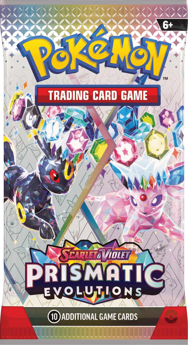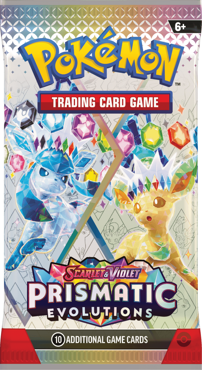 The ninth set in the Scarlet and Violet era Prismatic Evolutions, based on Japanese ‘Terastal Festival’ features pack artwork highlighting fan-favorite Eeveelutions. Starring Gen 1’s Jolteon, Glaceon, and Flareon, Gen 2’s Umbreon and Espeon, Gen 4’s Glaceon and Leafeon, as well as Gen 6’s lone Sylveon alongside the one who started it all, Eevee. Oh, and they’re all Stellar Tera Form.