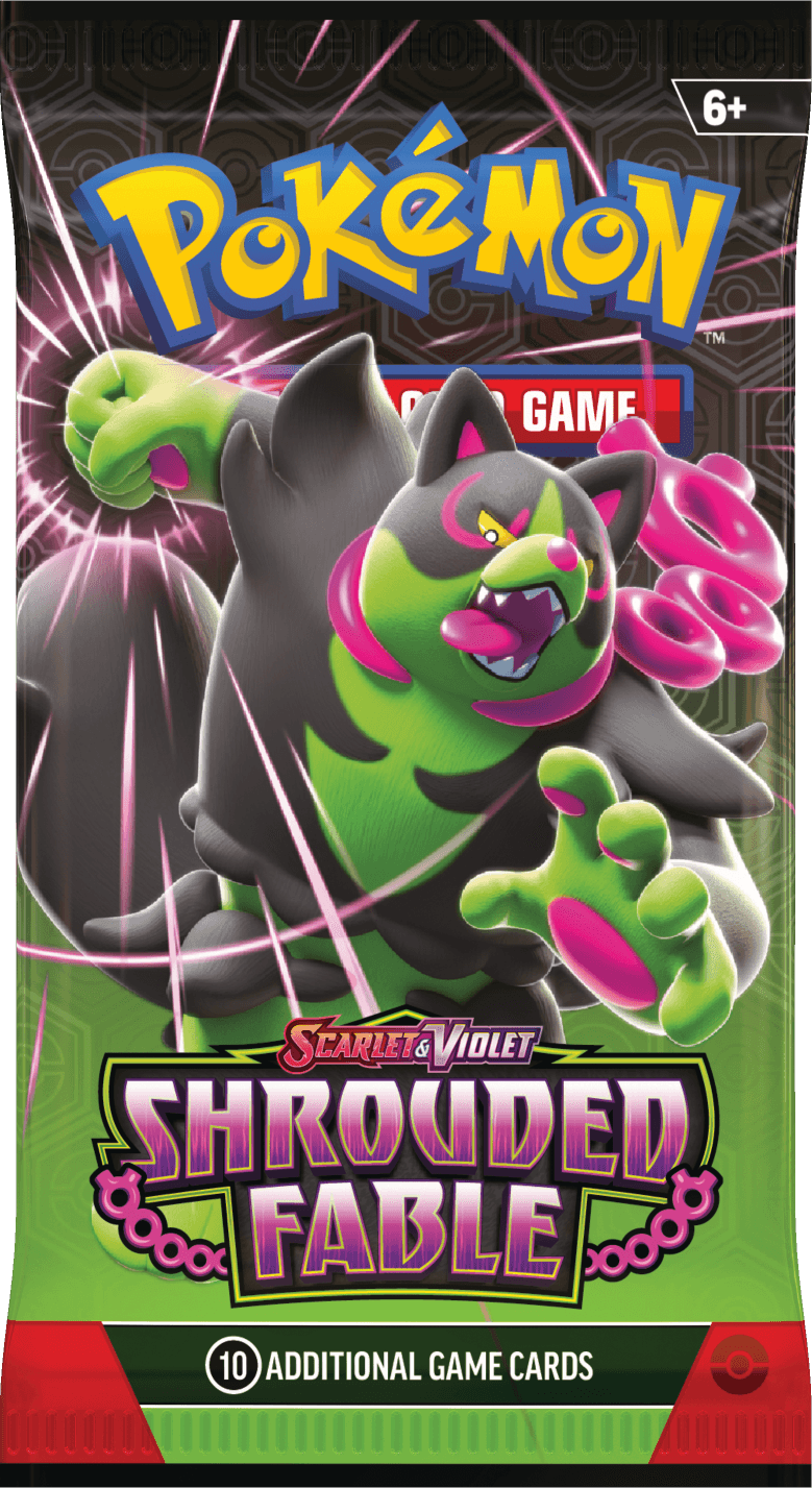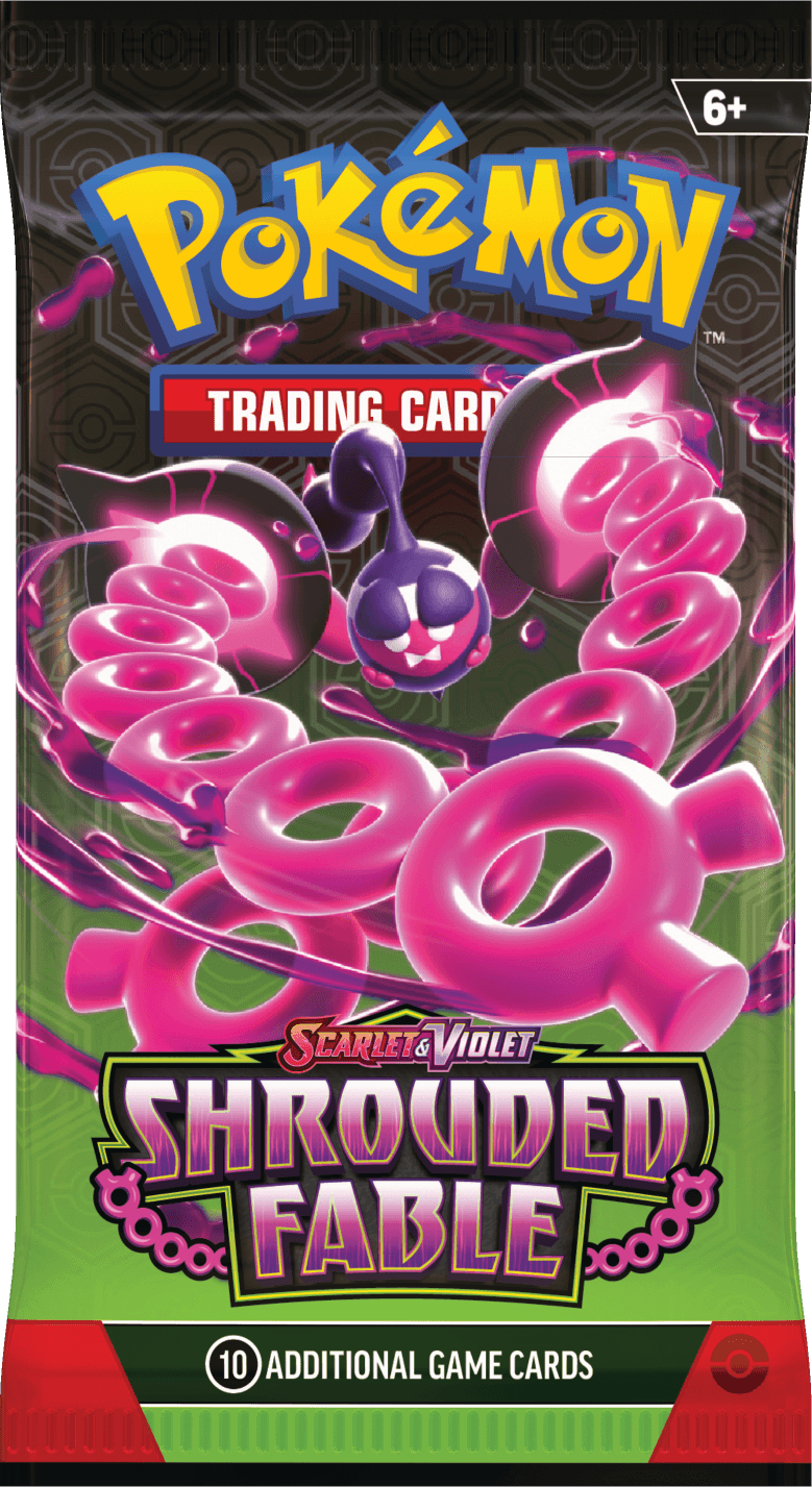 The third special set in the Scarlet and Violet era is Shrouded Fable. The pack wrappers featured the new pokemon Pecharunt and loyal three: Okidogi, Munkidori, and Fezandipiti from the Scarlet and Violet video game expansion.